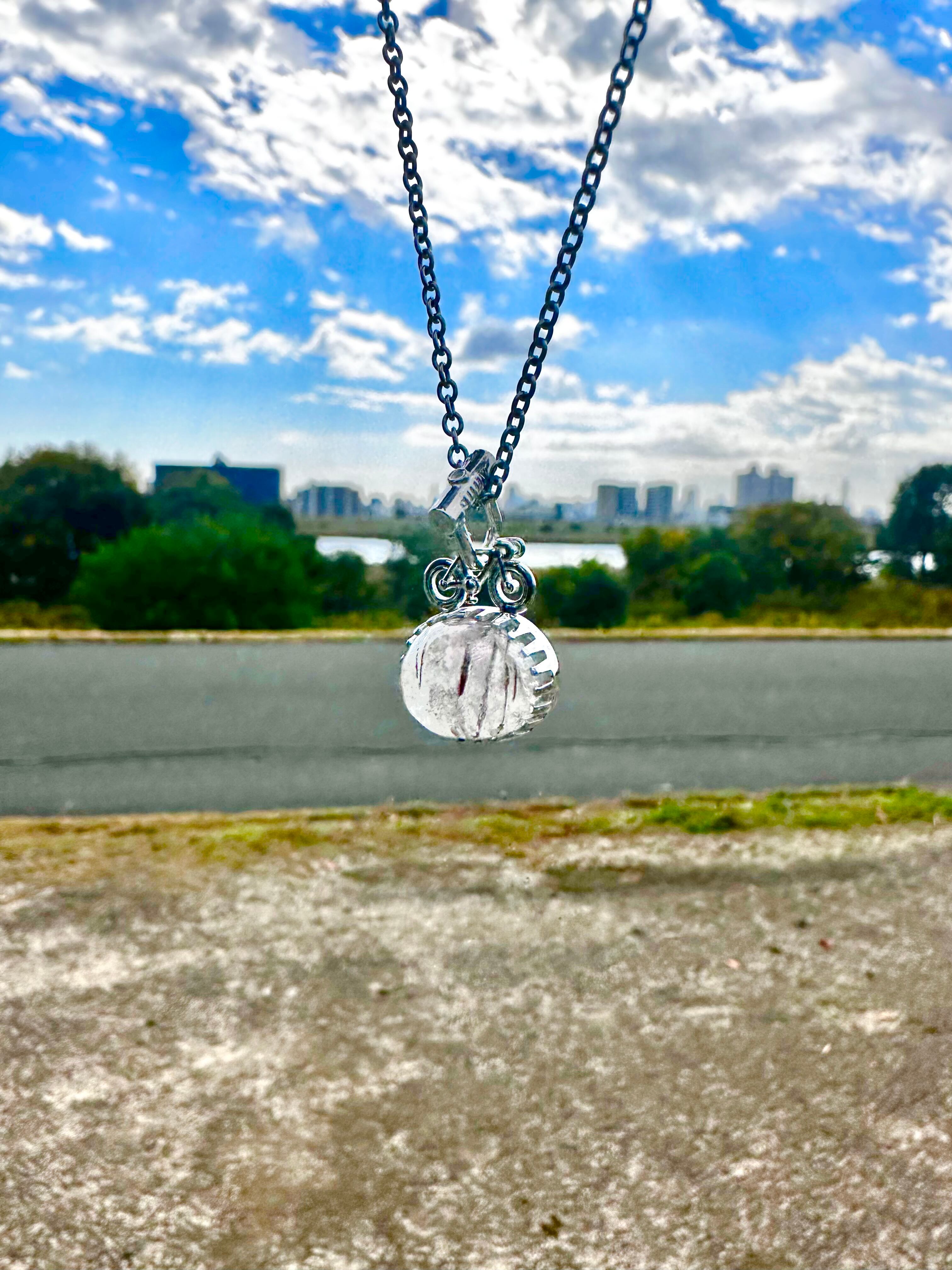 天然石の上を自転車が走る!U字ロックがバチカンになりアクセントになってます。